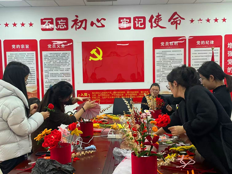 活動開始,職工們以丹青傳遞新年祝福,用筆墨書寫春聯(lián)和“福”字,一筆一劃間盡顯靈動與神韻,表達辭舊迎新、接福納祥的美好愿景;剪窗花環(huán)節(jié),大家圍坐一起,精心剪裁出寓意吉祥的窗花作品,展示傳統(tǒng)文化韻味,寄托新年期盼。隨后,通過視頻學習,“新春抱抱桶”制作活動展開,大家相互協(xié)作,把一根根扭扭棒編織成一朵朵“向日葵”、“牡丹花”、“郁金香”,扭扭花與紅漿果、銀杏葉等巧妙搭配,制成獨一無二的裝飾品,寓意新年美好期望。最后,大家一同前往食堂包餃子過小年。大家分工明確,默契配合,包出形狀各異的餃子,制作出一個個胖嘟嘟、圓鼓鼓,又飽含心意的餃子,有的像太陽,有的像元寶,花式各樣。大家交流趣事,歡聲笑語不斷。熱騰騰的餃子不僅暖胃,更暖心,大家臉上洋溢著幸福溫暖的笑容。