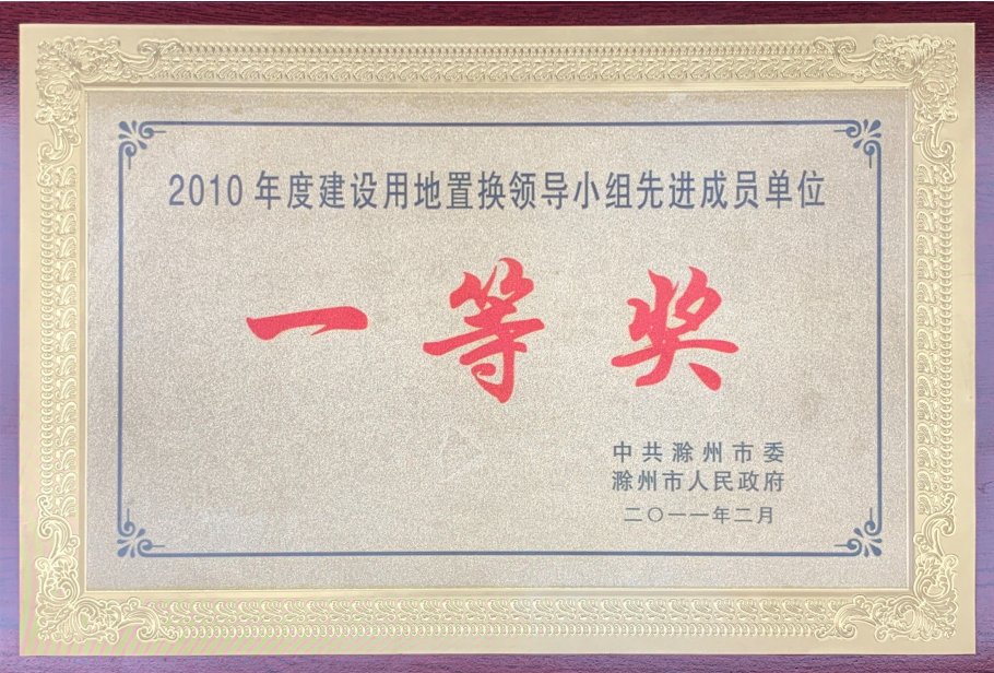 2010年度建設用地置換領導小組一等獎