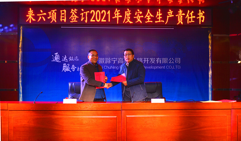 會后,董事長周傳錦與各參建單位、公司各部室負責人簽訂了2021年度安全生產和環保責任書。