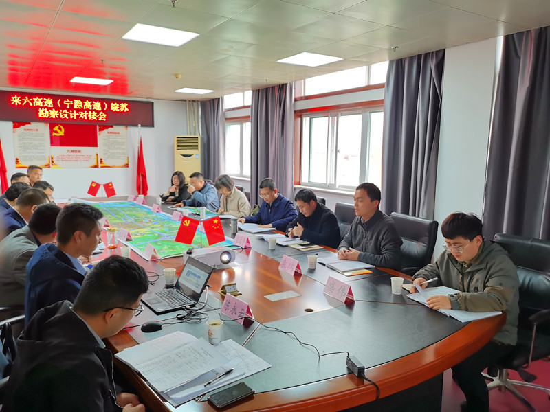 4月12日,來安至六合高速公路皖蘇勘察設計對接會在來六公司召開。公司董事長周傳錦、總經理汪增武、副總經理陳義兵、羅志圣,江蘇段勘察設計單位蘇交科集團股份有限公司副總工陸曉錦、道橋規劃設計四所所長涂圣武,安徽段勘察設計單位安徽省交通規劃設計研究總院股份有限公司副總工李靜、四分院副院長高文號等參加會議。