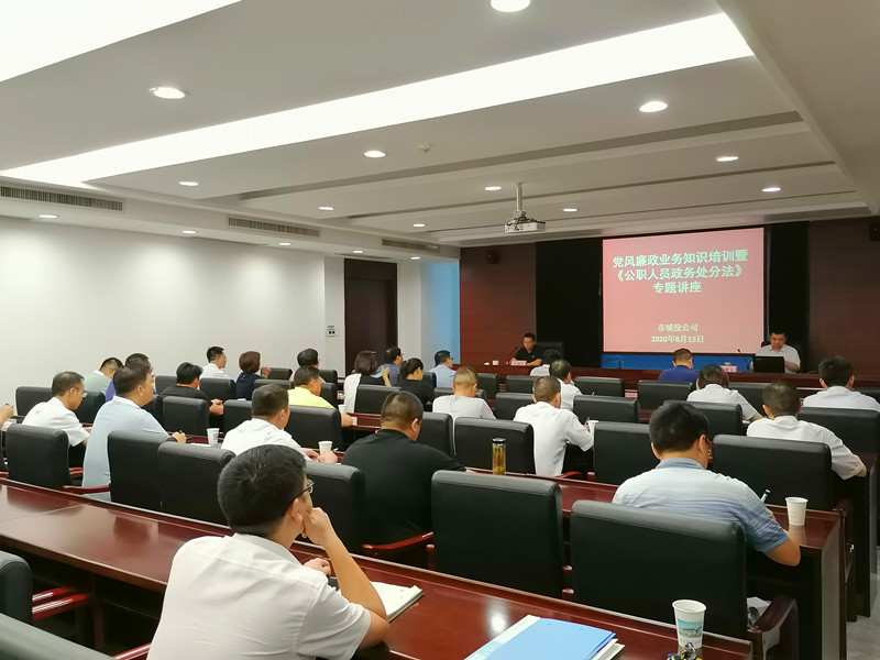 為加強公司及子公司黨風廉政建設,不斷提升黨風廉政工作水平,8月13日下午,市城投公司邀請滁州市紀委監委第四紀檢監察室陳長靜主任講授黨風廉政業務知識,解讀《公職人員政務處分法》重點內容。會議由市城投公司紀檢組長高文進主持,市城投公司全體人員及市城鐵公司、亭城文旅、明巢公司、來六公司、擔保公司、典當公司、小貸公司、工程咨詢公司等單位領導班子參加學習。