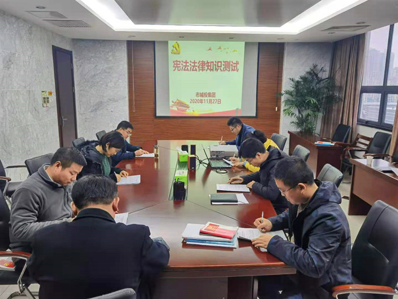 為深入貫徹實施憲法法律新要求,全面提高干部學法用法能力,11月27日,市城投集團組織開展憲法法律知識測試活動,集團公司本部中層以上人員參加測試。
