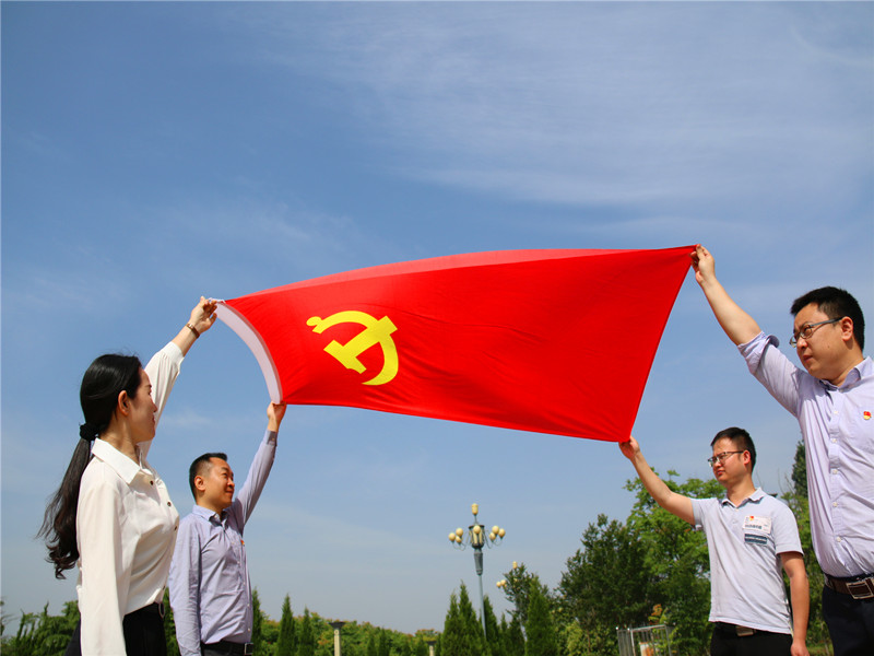 在蔚藍(lán)天空下,市城投集團(tuán)黨員高舉鮮紅的黨旗,帶著滿腔的崇敬之情,開(kāi)展“我和黨旗合個(gè)影”活動(dòng)。在黨員活動(dòng)室里,全體黨員集中學(xué)習(xí)關(guān)于中國(guó)共產(chǎn)黨的歷史論述,大家共同舉起黨旗,將對(duì)黨的無(wú)限熱愛(ài)凝聚在與黨旗的合影中。