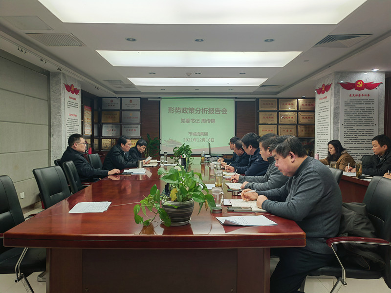 12月18日,市城投集團召開形勢政策分析報告會,黨委書記周傳錦作形勢政策分析報告,集團公司干部職工參會。