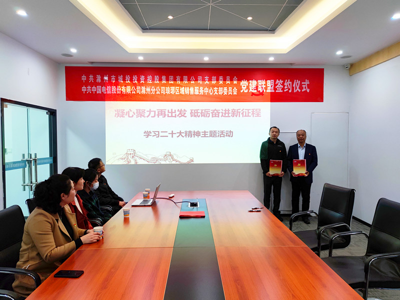 為深入學習宣傳貫徹黨的二十大精神,切實把集團公司黨員干部群眾的思想和行動統一到黨的二十大精神上來,11月8日下午,市城投集團黨支部與電信公司黨支部開展學習黨的二十大精神主題共建活動,圍繞“數字經濟”“智慧滁州”等內容開展觀摩交流。