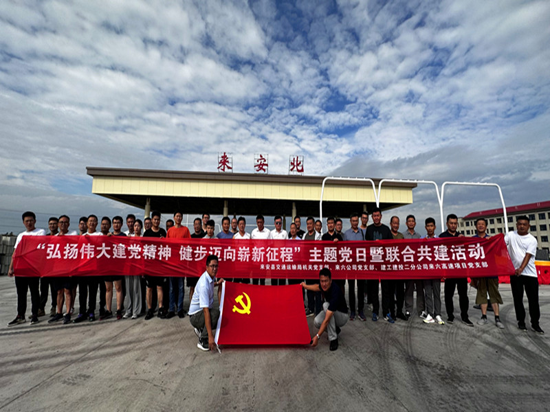 7月30日,來六公司黨支部聯(lián)合來安縣交通運(yùn)輸局機(jī)關(guān)黨支部、安徽建工建設(shè)投資集團(tuán)二分公司來六高速項(xiàng)目黨支部成功舉辦了“弘揚(yáng)偉大建黨精神 聯(lián)建秀出新風(fēng)采”主題黨日暨聯(lián)合共建活動(dòng)。