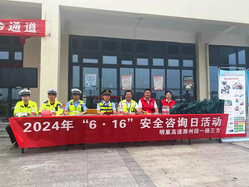 今年6月是第23個(gè)全國(guó)“安全生產(chǎn)月”,根據(jù)明巢公司“安全生產(chǎn)月”方案安排,聚焦“人人講安全,個(gè)個(gè)會(huì)應(yīng)急”目標(biāo),加強(qiáng)社會(huì)公眾交通安全意識(shí),普及安全法律法規(guī)和應(yīng)急知識(shí),6月17日上午,明巢公司組織黨員干部聯(lián)合高速交警、高速路政等單位在S09明巢高速定遠(yuǎn)服務(wù)區(qū)開展以“人人講安全,個(gè)個(gè)會(huì)應(yīng)急,暢通生命通道”為主題的“安全宣傳咨詢?nèi)?rdquo;活動(dòng)。