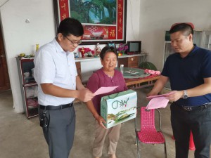 在義和村村委會,王峰與村干部進行座談,對上半年幫扶工作進行總結并謀劃布置下半年幫扶工作。隨后,王峰一行在義和村第一書記趙來的陪同下,分別走訪慰問義和村周德明、胡蘇華兩戶聯系貧困戶以及戚要升、趙應分兩戶困難老黨員家庭,詳細了解他們的身體健康狀況和家庭情況,結合文明村鎮創建宣傳《滁州市文明行為促進條例》和《滁州文明16條》等文明創建知識,并為送上節日的問候和慰問品。王峰表示在落實精準幫扶措施的同時,公司將進一步加強與義和村的結對共建工作,積極幫助義和村開展文明村鎮創建工作。