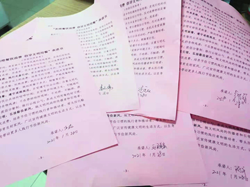 1月28日,市城投集團組織開展了“拒絕餐飲浪費 倡導文明用餐”簽名承諾活動,向全體在職人員傳達學習了習近平總書記關(guān)于厲行節(jié)約、反對浪費特別是制止餐飲浪費行為的重要指示精神,號召廣大干部職工參與到“文明餐桌 拒絕浪費”行動中來。