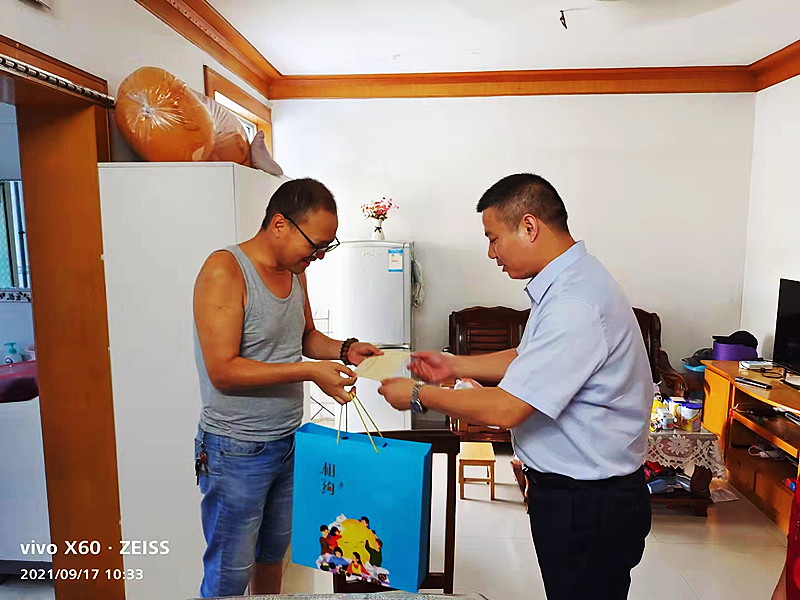 中秋佳節來臨之際,9月17日上午,市城投集團聯合鳳陽社區赴鳳凰四村、營造公司宿舍樓開展“中秋節”慰問活動。為兩戶困難群眾送去月餅及慰問金,并送上節日問候和祝福,用關愛傳遞真情。