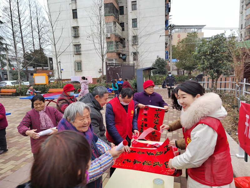 活動現場,志愿者們將一副副承載著濃濃年味的春聯送到社區居民手中,居民們拿著寫滿祝福美滿的春聯,臉上洋溢著喜慶的笑容。活動結束后,志愿者對社區內廣場、道路、樓道的垃圾進行了清理,規范非機動車、機動車等有序停放。