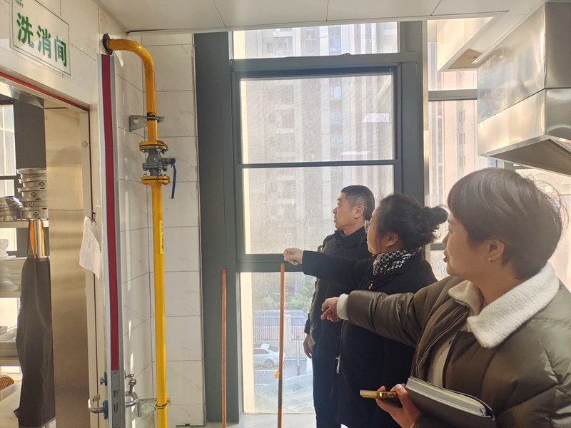 檢查組對食堂燃氣用氣安全、消防設施、餐廳電線有無亂拉亂扯、是否有裸露現象,以及油煙管道清洗等情況進行檢查。同時,在檢查過程中對食堂工作人員進行燃氣、用電、消防等安全知識宣傳教育,增強了工作人員的安全意識。
